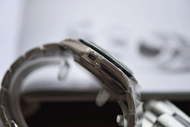 The name 116520LV likely references the Submariner 116610LV, which also boasts a green ceramic bezel. This grey Daytona has a 40mm case with a thickness of 15mm, crafted from 316L stainless steel rather than the more premium 904L stainless steel. I recently posted a review of the watch on my blog, but I haven’t sold any yet. If it receives a favorable response, perhaps BL will consider upgrading to 904L steel. The case features a brushed surface alternated with polished sections, and the chronograph buttons can only be operated when unscrewed. Unfortunately, the lugs’ backside lacks engravings, a feature present on genuine Rolex watches, although the latest Daytona replicas from Noob factory do exhibit this detail.